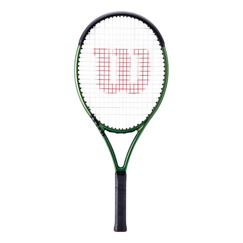 The Blade 25 v8 excites with head-turning looks and top-flight performance for junior players developing their game. Conducive for smooth, easy swings that allow players to be aggressive and dictate play, this racket can accelerate skill and confidence ahead of schedule. All-new design sports flashy green metallic finish for vibrant look, while top features include a Top Grip Taper on the handle for better feel on two-handed backhand and Parallel Drilling for a more forgiving string bed response. Racket comes pre-strung with Wilson Sensation 17/1.25, an arm-friendly multifilament string built for enhanced comfort.