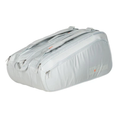 With the Shift Super Tour racket bag from Wilson you are well equipped for every training session and every match. It comfortably holds up to 15 rackets, while still allowing you to easily store accessories such as balls and grip tapes or personal items. Reinforced side inserts increase durability, while the Thermoguard lining protects your rackets from extreme temperature fluctuations and maintains racket tension. The padded shoulder strap is easily adjustable and features two carrying straps for even more comfort. The Wilson racket bag also has an additional shoe compartment for an extra pair of shoes.